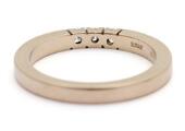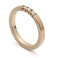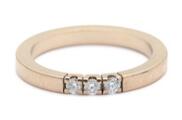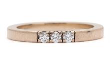Diamantring af 14 kt. rosaguld prydet med tre brillantslebne diamanter. Vægt ca. 4 g. B. 3 mm. Str. 55.