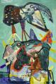 “Father feather”, 1961. Signeret Lucebert 5 VIII, '61; titel på bagsiden. Olie på lærred. 150×100 cm.
