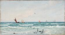 “Frisk Kuling, Hornbæk”. Fresh wind, Hornbaek". Signed and dated Alfred Olsen Hornbæk, 1896. Oil on canvas. 47×84 cm. Unframed.