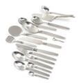 Bestående af: 6 middagsknive, 6 middagsgafler, 6 middagsskeer, 5 dessertskeer, 5 kagegafler, 13 teskeer, 1 mokkaske, 1 saltske, 1+1 serveringsspade, 1 salatsæt, 1+1 serveringske, 1 sildegaffel, 1 lagkagekniv.