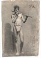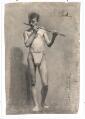 En model spiller fløjte. Utydeligt betegnet. Kul og hvide forhøjninger på papir. Bladstørrelse ca. 65×43. cv