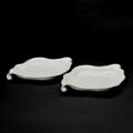 “Hvid Konkylie”. To serveringsfade af porcelæn, dekoreret med klar glasur. Tryksign. monogram, hhv. 14191 og 375. Kgl. P. H. 5. B. 31. L. 39. (2)