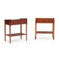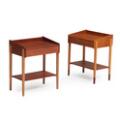 Two teak, beech and oak bedside tables with drawer and shelf. Model 148. Designed 1952. Manufactured by Søborg Furniture. H. 56. W. 47. D. 32 cm. (2)