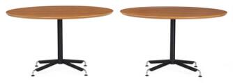 Two tables with black lacquered and chromed steel frame. Circular cherry wood top. Retailed and marked by Paustian. H. 73 cm. Diam. 125 cm. (2)