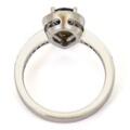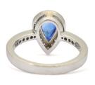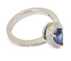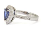 Safir- og diamantring af 18 kt. hvidguld prydet med dråbeslebet safir omkranset af talrige brillantslebne diamanter på i alt ca. 0.34 ct. Farve: F-G. Klarhed: VS. Vægt ca. 5,3 g. B. 12 mm. Str. 54.