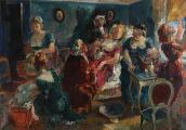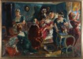 Scene from a maternity ward. Signed Ludvig Jacobsen. Oil on canvas. 75×106 cm.