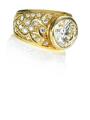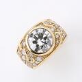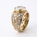 A diamond ring set with a brilliant-cut diamond weighing app. 3.08 ct. flanked by numerous brilliant-cut diamonds, mounted in 18k gold. Colour: Wesselton (H). Clarity: VVS-SI1. Proportions: Very good. Finish Grade: Very good. Size 50. Circa 1995.