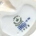 Royal Copenhagen: pige med dukke nr. 1938, siddende pige med forklæde nr. 1315, strikkende pige nr. 1314, pige med neg nr. 908 og vinddrossel nr. 1235.
