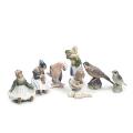 En samling figurer af porcelæn, dekoreret i underglasurfarver. Royal Copenhagen og B&G. H. 12–19. (7)