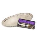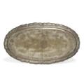 Stort dyrerygsfad af pletsølv, svungen og ligeknækket fane. 19. årh. L. 85 cm. B. 47 cm.