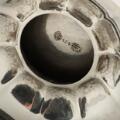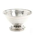 A hammered sterling silver centerpiece, footpiece with beads and stylized foliage. Design no. 424. Manufactured by Georg Jensen, 1915–27. Weight app. 225 gr. H. 10. Diam. 16.5 cm.