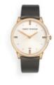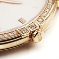 A lady's diamond wristwatch of 18k gold. Model “Midnight”. Quartz. Cream-coloured dial with gold hands a diamond hour markers. Grey Harry Winston satin strap with C-buckle of 18k gold. Bezel and strap shoulders set with 103 diamond weighing a total of app. 0.94 ct. Watch diameter app. 39 mm. 2000s.