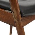 Normal patina due to age and use, including scratches and marks. One chair with larger cracks and repairs. Leather with stains and dirt.