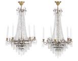 A pair of French chandeliers, each with five candle holders, internal electric lightning. 20th century. H. 78 cm. Diam. 49 cm. (2)