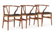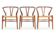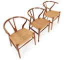 “Y-stolen”. Sæt på tre armstole af patineret eg, sæder af flettet papirgarn. Model CH 24. Formgivet 1949. Udført hos Carl Hansen & Søn. (3)