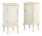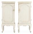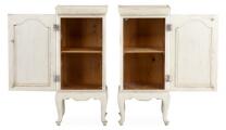 A pair of bedside tables of painted wood, aech with a pannel door and cabriole legs. Early 20th century. H. 80. W. 36. D. 36. (2)