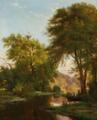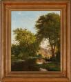 Lystfiskere i en robåd ved en åbred. Sign. C. F. Aagaard 1877. Olie på lærred. 69×55,5.