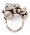 “Moonlight Grapes” diamantring af sterlingsølv prydet med talrige brillantslebne diamanter i form af sommerfugl. Vægt ca. 22,5 g. B. 2,5 cm. Str. ca. 57.