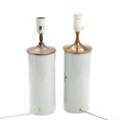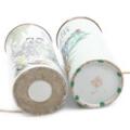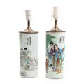 Two Chinese porcelain hat stands, decorated in colours and gold with women and children in a garden setting. Now mounted as table lamps. The one marked with red four character mark. 19th-20th century. H. excl. mounting 28 and 28.5 cm. (2)