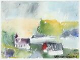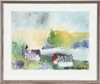 Motiv fra Mikladal, Færøerne. Signeret Zacharias Heinesen 11. Akvarel på papir. Bladstørrelse 23×30 cm.