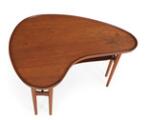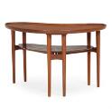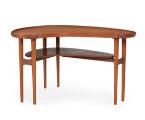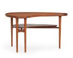 A teak coffee table with six-legged frame and underlying shelf. Top with raised edges. Made by Bovirke. 1950–60s. H. 55. L. 98. W. 78 cm.