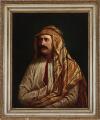 Portrait of a man wearing a tunic and a golden headdress. Unsigned. Oil on canvas. 82×64 cm.