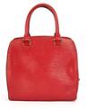 “Pont Neuf” taske af rødt Epi læder med gyldne beslag, to hanke, to udvendige lommer, et lynlås rum med en indvendig lynlås lomme og rødt ruskindsfor. H. 25 x B. 24 x D. 10 cm. 1997.