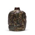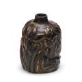 A small stoneware vase with narrow mouth and relief decor in the shape of plant motifs. Decorated with Sung glaze. Signed Salto, 21475. Royal Copenhagen. Made 1975–1979. H. 7.7 cm.
