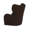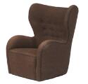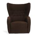 Sjælden øreklapstol. Sæde sider og dybthæftet ryg betrukket med brun uld. Formgivet 1935. Udført 1930'erne hos snedkermester Jacob Kjær.