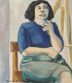 Kvinde i atelieret. Sign. Kirsten Ruth-60. Olie på lærred. 80×66 cm.