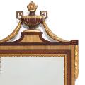 Dansk spejl i ramme af guldstafferet mahogni, todelt spejlfelt, rigt dekoreret med perlestaf samt vase med guirlander. Louis XVI form. 19. årh. H. 201. B. 67.