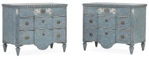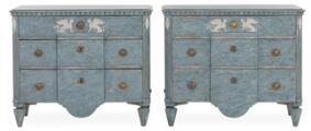 A pair of Gustavians style painted commodes. Sweden, 20th century. H. 78 cm. W. 93 cm. D. 53 cm. (2)