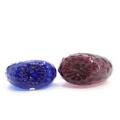 Two glass flasks, blue and purple. 1/8 pot. Holmegaard. 19th century's second half. H. 11.4 cm. (2)
