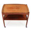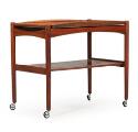 Serveringsvogn af palisander med underliggende hylde og aftagelig bakke. 1960'erne. H. 60. L. 73. B. 44 cm.