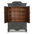Skab af bemalet træ, med front hvori to fyldningsdøre og tre skuffer. Ca. 1920. H. 200. B. 140. D. 49.