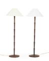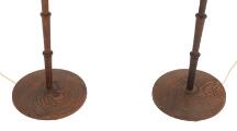 Par standerlamper af massiv wengé, stammer i form af imiteret palme, base indlagt med patineret messing. 1960'erne. H. 122 cm. inkl. skærme. (2)