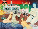 “Tentation de St. Antoine”. Sign. på bagsiden. Olie på lærred. 90×116. Uindrammet.