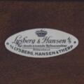 Sofabord af riopalisander med opklappelige, halvcirkelformede endplader. Udført hos snedkermester Frits Henningsen. Udgået og mærket hos Lysberg, Hansen & Therp. H. 60. B. 55/138. L. 83,5.