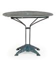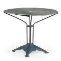 An Art Deco bistro table with painted cast iron frame and painted steel top. Stamped LV on the base. Made ca. 1930–40s. H. 75 cm. Diam. 97 cm.