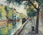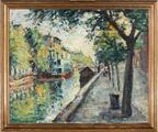Kanalparti. Sign. E. J. 47. Olie på lærred. 70×60.