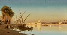 View of the Nile near Cairo. Signed and dated C. Neumann 1878. Oil on canvas. 90×168 cm.