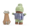 To figurer af glaseret stentøj. Én signeret Lisa L. H. 12–19. (2)