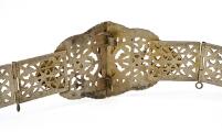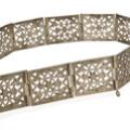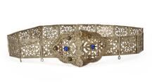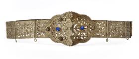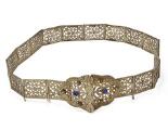 A 19th century Ottoman silver belt, pierced decoration embossed with stones, indistinct mark. Weight 389 g. L. 92 cm.