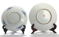 Én tallerken repareret. Én tallerken med kanthak. Et fad med kanthak og revne.