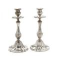 A pair of German silver candlesticks. Swedish import marks. 20th century. Filled. H. 25 cm. (2)
