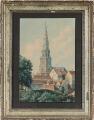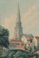 The Church of Our Saviour, Copenhagen. Signed C. N. Drawing ink and watercolour on paper laid on paper. Sheet size 23×15.5 cm. Silvered wooden frame.