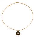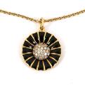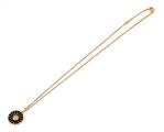 Margueritvedhæng af 18 kt. guld prydet med sort emalje og talrige brillantslebne diamanter. Halskæde af 18 kt. guld medfølger. Samlet vægt ca. 8 g. Vedhæng inkl. øsken L. 2,5 cm. L. 45 cm. Georg Jensen after 1945. (2)