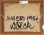 Uden titel, 1961. Signeret med datering på bagsiden. Olie på plade. 30×40 cm.