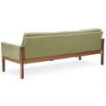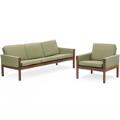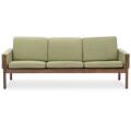 “AP 62/3”, “AP 62”. Fritstående tre-pers. sofa og lænestol med stel af riopalisander. Sæde, sider samt ryg betrukket med lys grøn uld. Udført hos AP Stolen. Sofa: L. 195. (2)