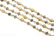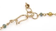 An alexandrite necklace set with numerous beads of faceted alexandrite and 22k gold beads, mounted in 18k gold. Weight app. 4.3 g. L. 46–47 cm.
